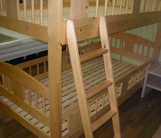 R340 タンスのゲン 天然木 子供用二段ベッド、幅84cm 美品