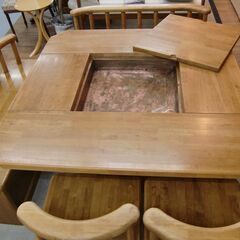 R222 天然木 囲炉裏ダイニング5点セット 、都市ガス1口コンロ付